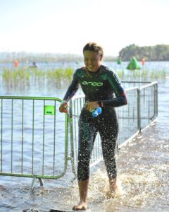 Rose Lynch exiting the swim at Lough Cutra Castle Triathlon in Galway.  Photo Credit: Lough Cutra Castle Triathlon