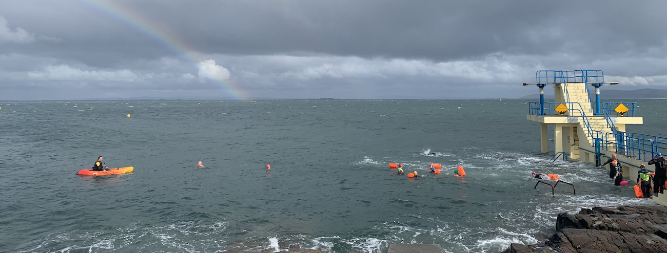 From around Mid-May to September, the club runs a kayak-supported open water swim session every Wednesday from 7pm. We start at Blackrock Diving Tower in Salthill. You do not need to register in advance, but we will take a roll call of who gets in the water and ensure that everyone exits the water safely.